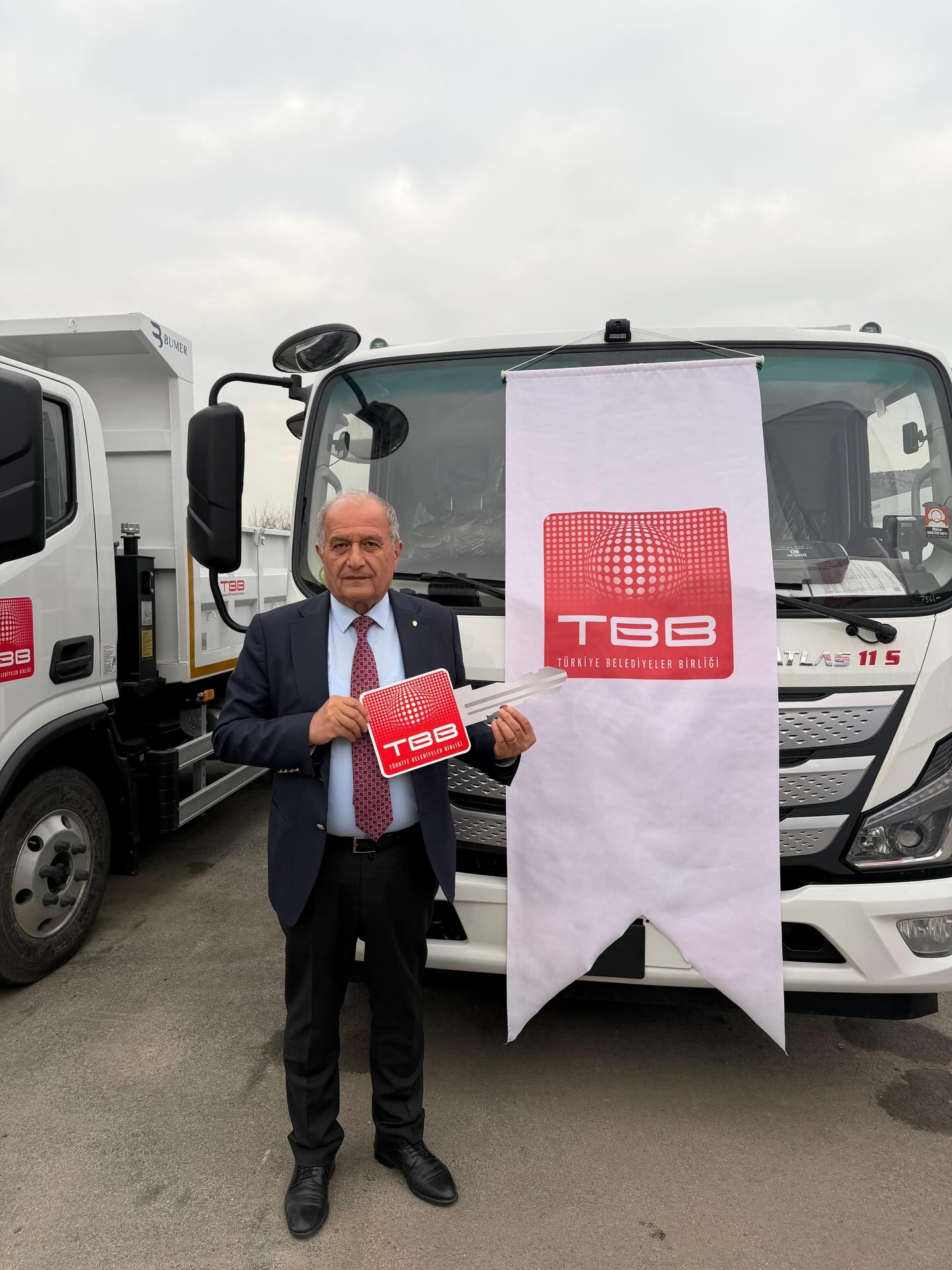 ''Ankara’da yapılan dağıtım töreninde aracımızın sembolik anahtarını TBB Başkanı ve Mersin Büyükşehir Belediye Başkanı Sn. Vahap Seçer’den aldım.''