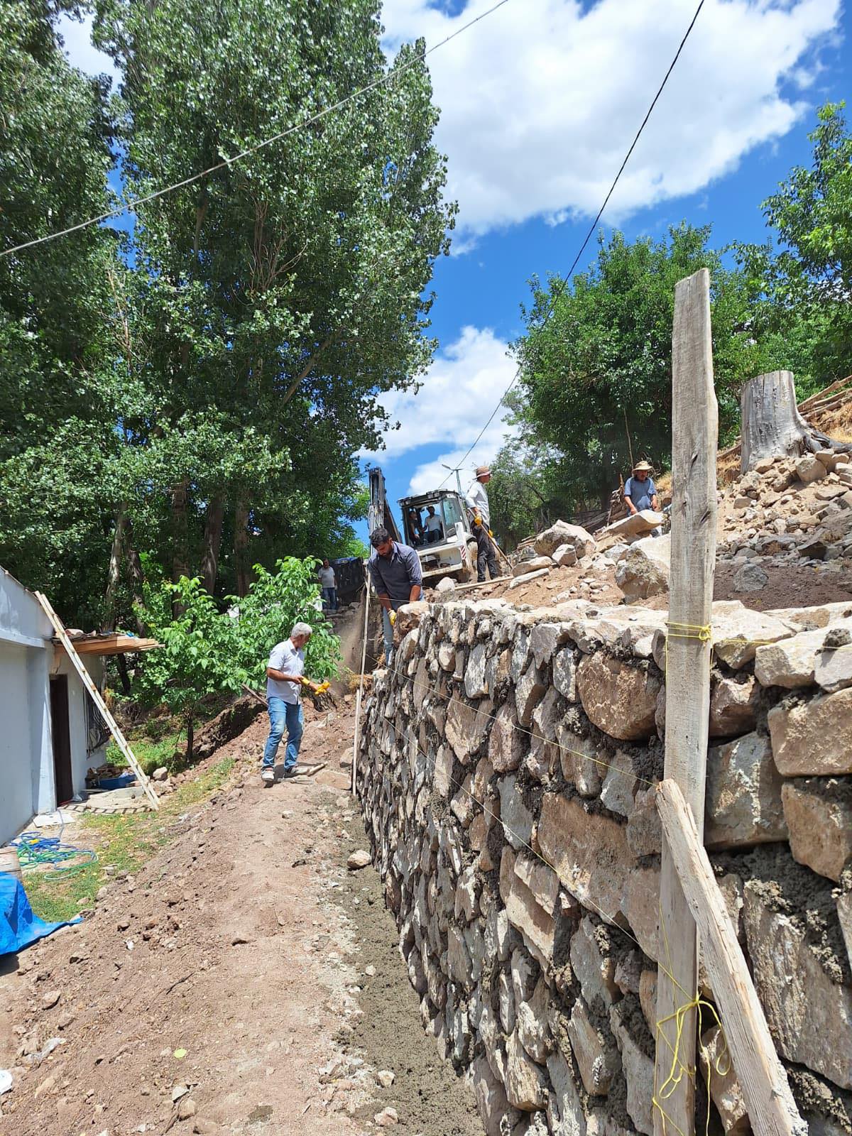 ''MAHALLELERİMİZDE TAŞ DUVAR ve KİLİT TAŞ YOL YAPIMI İŞLERİMİZ ARALIKSIZ DEVAM EDİYOR. Bu hafta Çimenlik, Çimenlik Dikenli mezrası, Uğurlu yol duvarlarını yaptık, yapıyoruz. Ayrıca kilit taşı yol yapım çalışmalarımız merkezde Yenimahalle ve Bağyolundan Karabayırın bitimine kadar olan bölümde devam etmekte olup; Merkez ve Kırsal Mahallelerimizde bu yıl ki hedef merkezde rezerv alan dışında kalan mahallelerimizin duvar yapımlarını bitirmek, yol ve kaldırımlarını yenileyerek ağaçlandırmak ve aydınlatmalarını tamamlamak olacaktır.'' dedi.