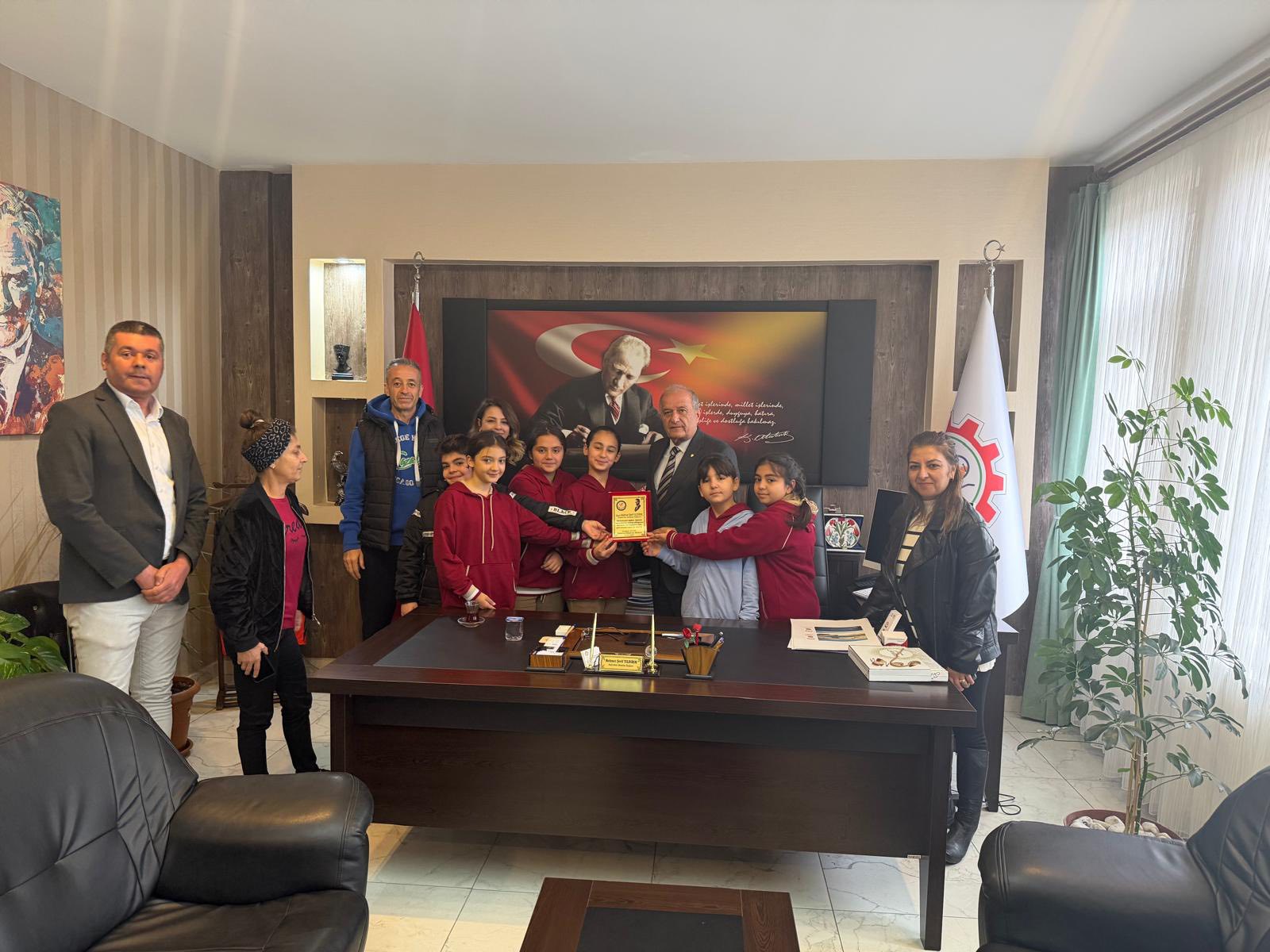 Eğitimi, etkinliklerini, yaptıklarını, yapacaklarını konuştuk. Okula “Bando Takımı” kuracaklarını söyleyince bando belediyemizin okulumuza hediyesi olsun dedik. Ayrıca sportif faaliyetler için forma sözümüzle öğretmenlerini yetkilendirdik. Minik elleri ile plaket takdim ettiler. Her daim öğrencilerimizin öğretmenlerimizin ve eğitimin yanında olacağız.'' dedi.