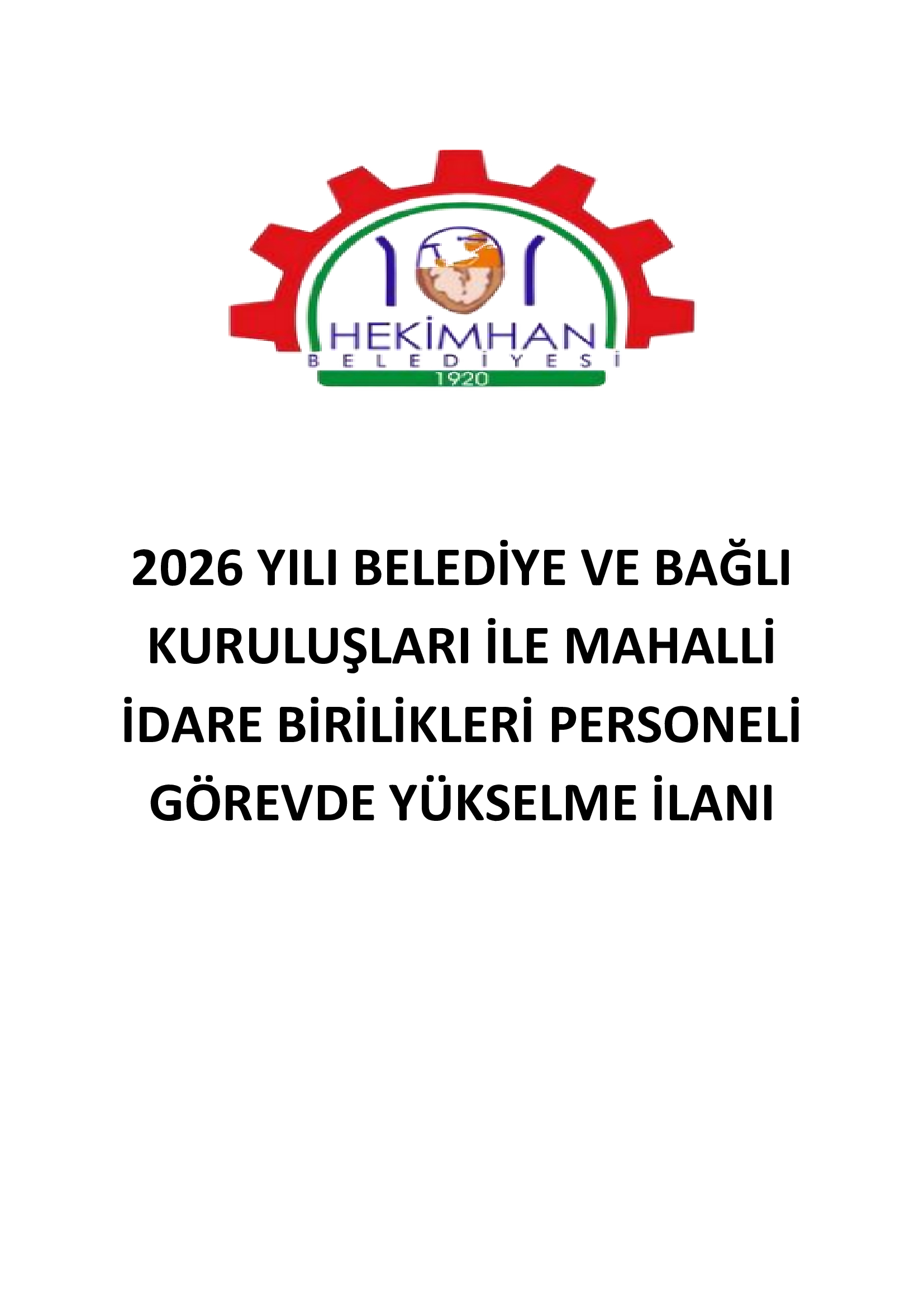 2026 YILI BELEDİYE VE BAĞLI KURULUŞLARI İLE MAHALLİ İDARE BİRİLİKLERİ PERSONELİ GÖREVDE YÜKSELME İLANI